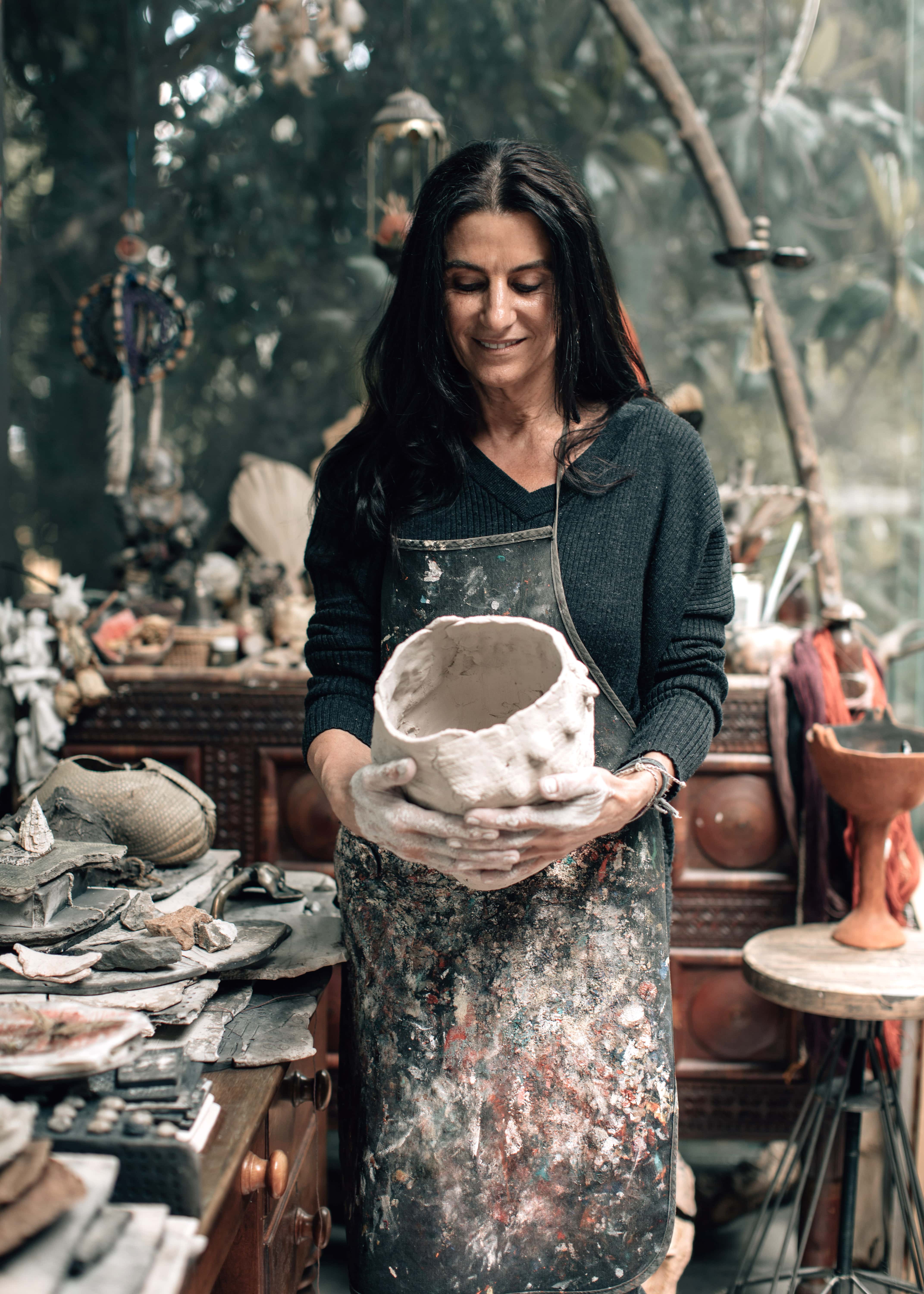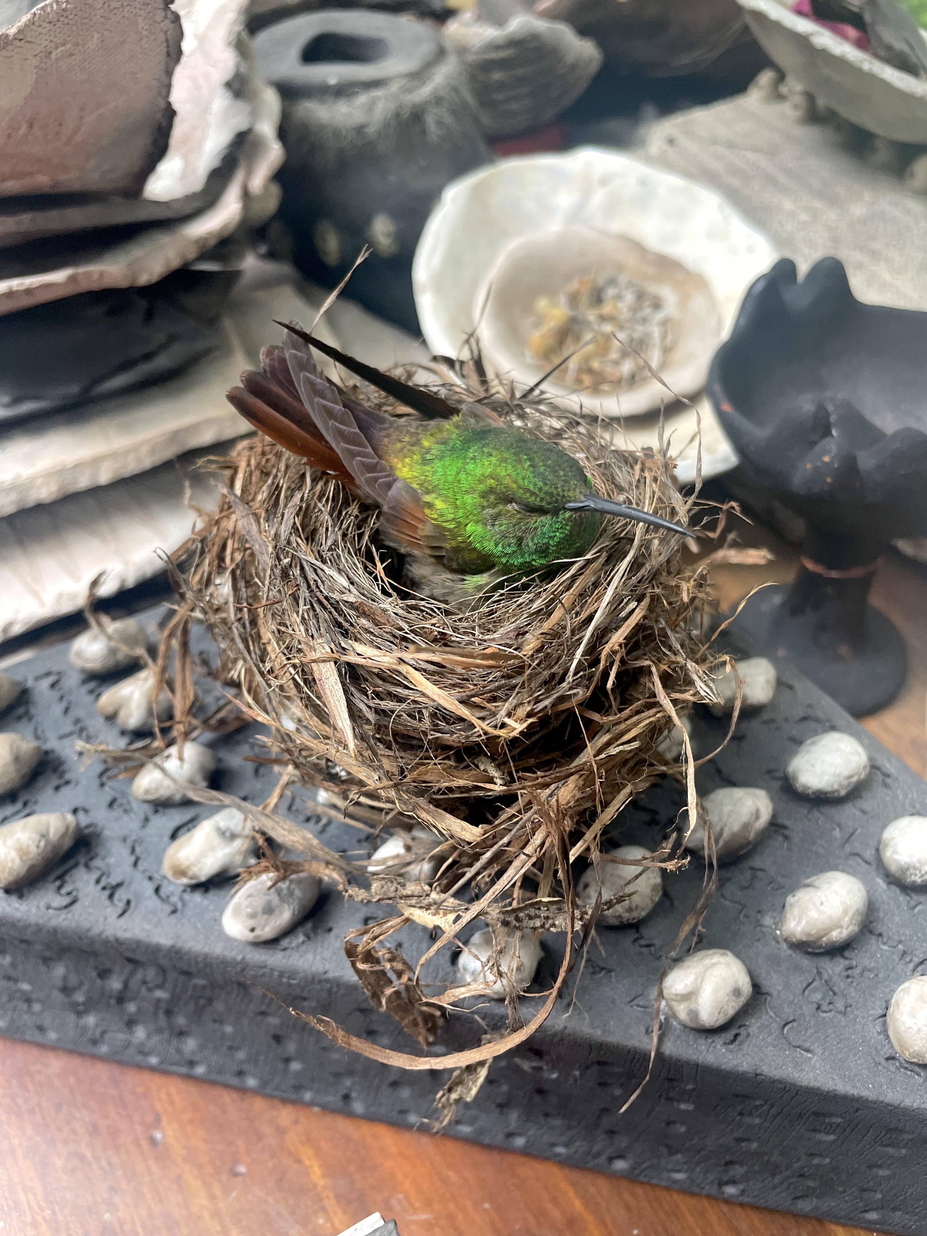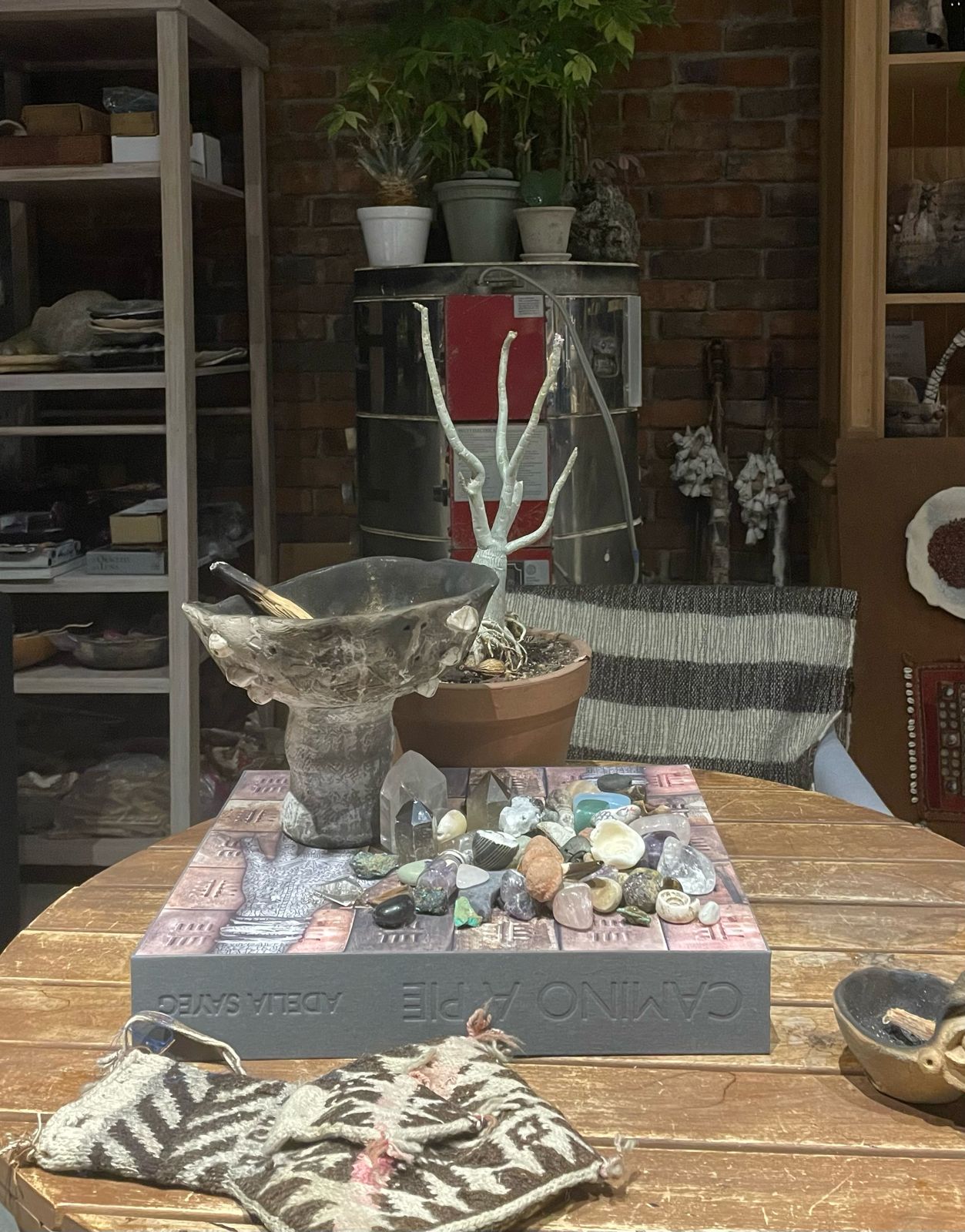 Para curar, las piezas deben curarse primero a sí mismas. Ellas me susurran qué grieta cubrir con seda, cuál suturar con henequén, cuál adornar de conchas y plumaje.