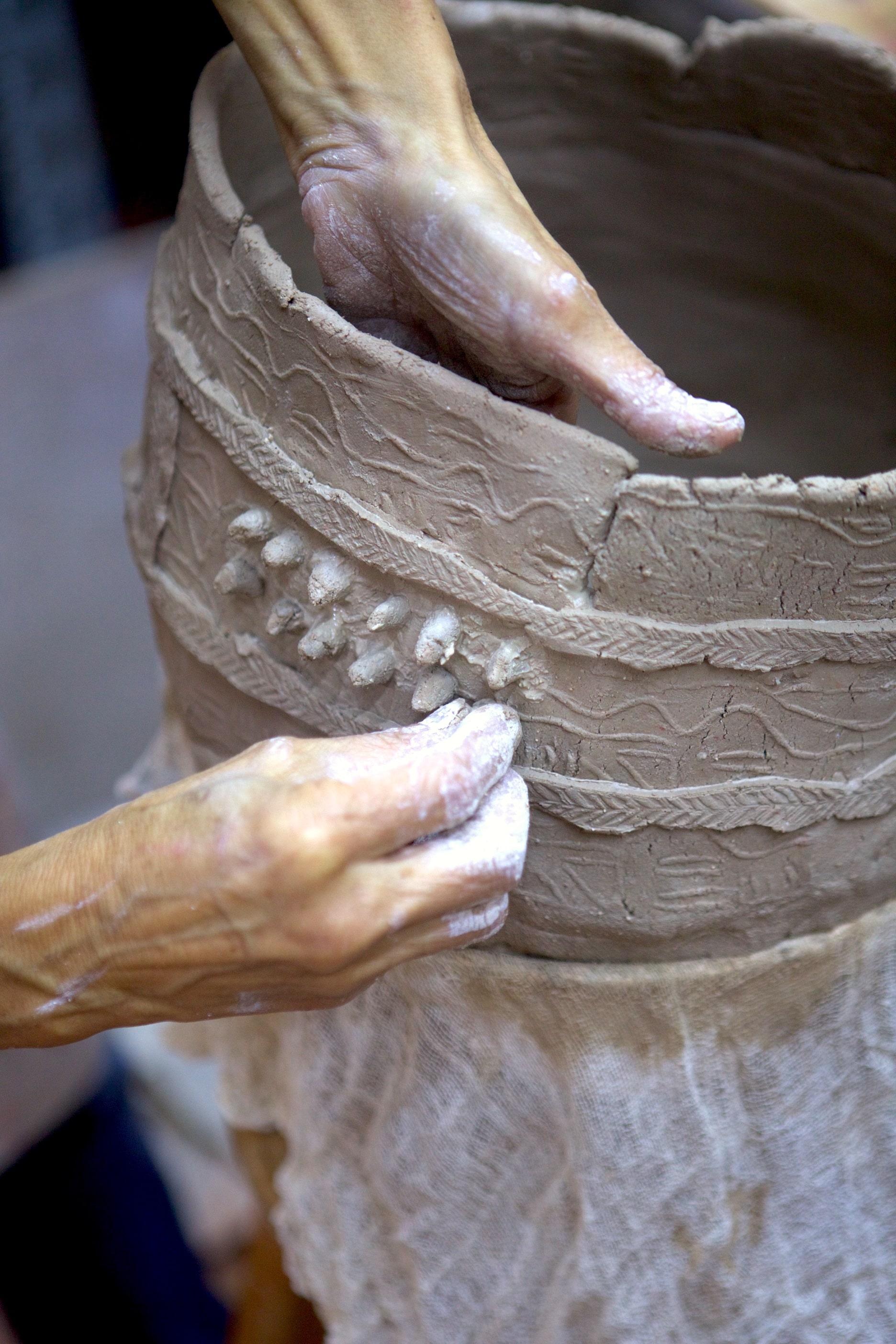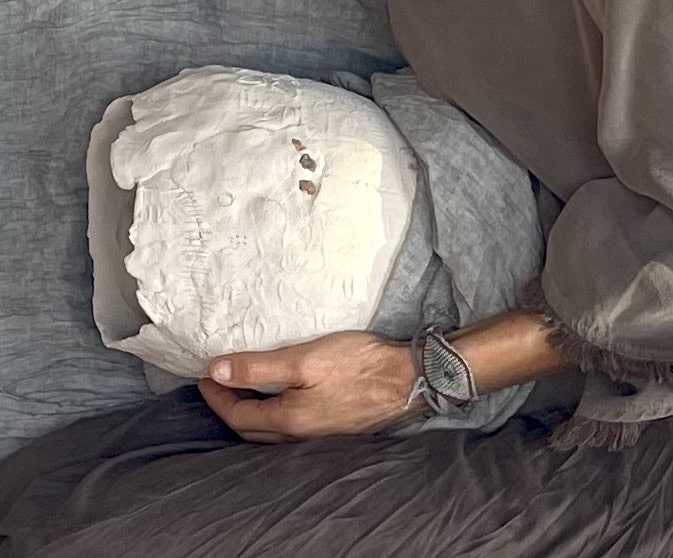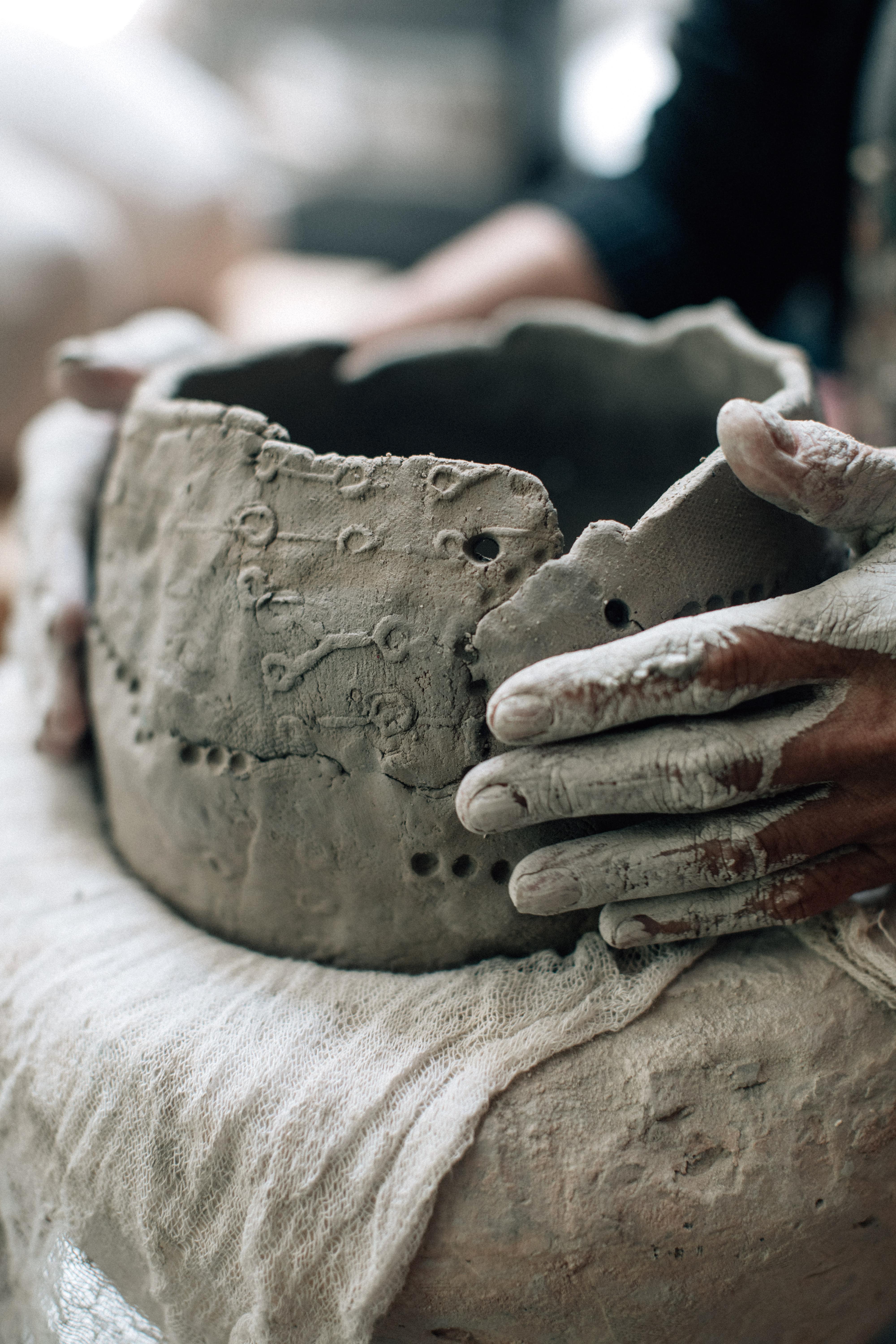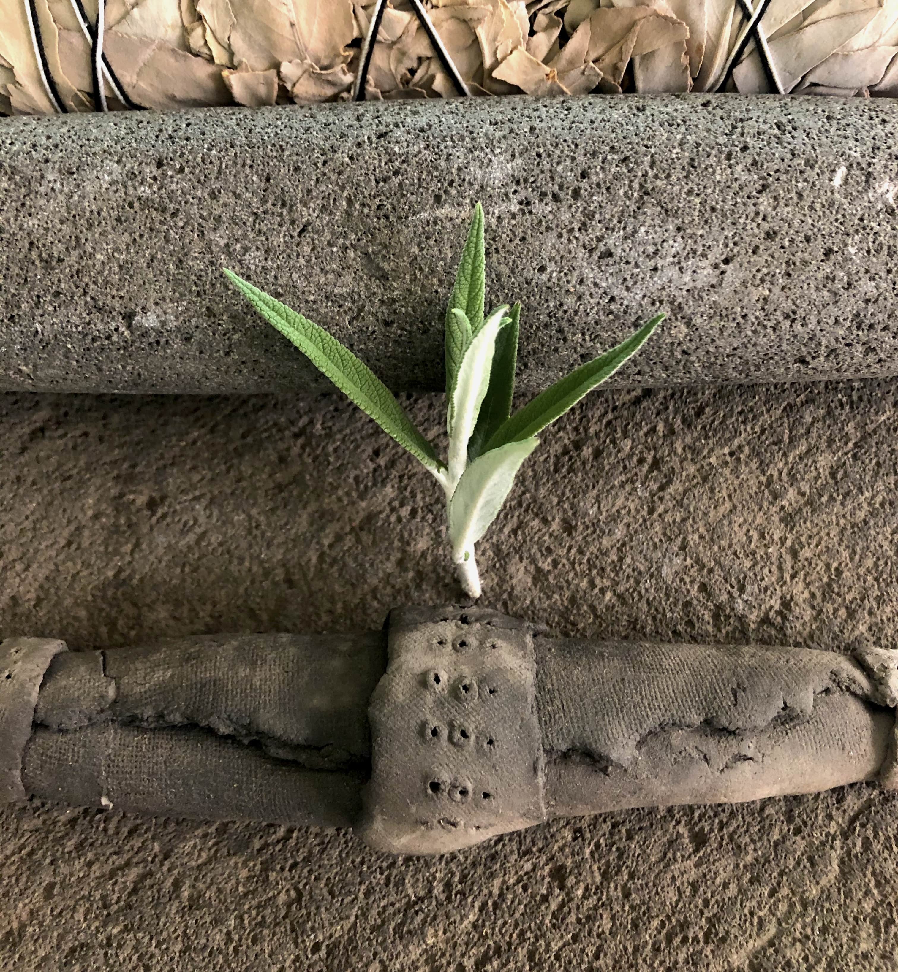 Para curar, las piezas deben curarse primero a sí mismas. Ellas me susurran qué grieta cubrir con seda, cuál suturar con henequén, cuál adornar de conchas y plumaje.